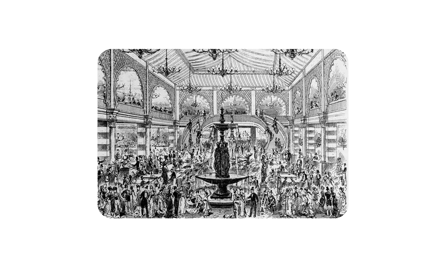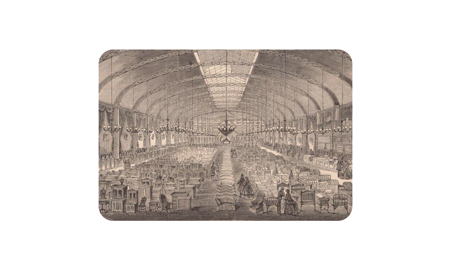 À l’été 1860, l’ensemble des bâtis est finalement entièrement rasé et laisse place à la construction d’une longue et vaste nef recouverte par une charpente en fer apparente et close sur la rue par une devanture en vitrage. Cet ouvrage est alors affecté à un grand magasin de literie, Les Colonnes d’Hercule.